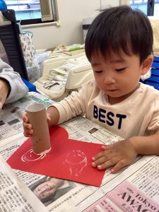 トイレットペーパーの芯でスタンプをしたり…